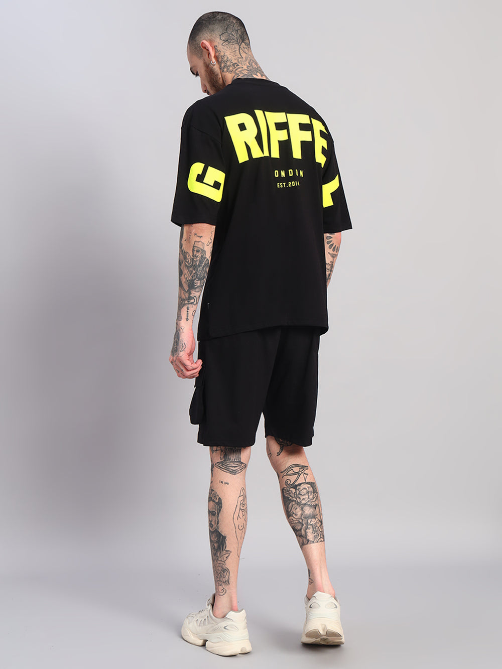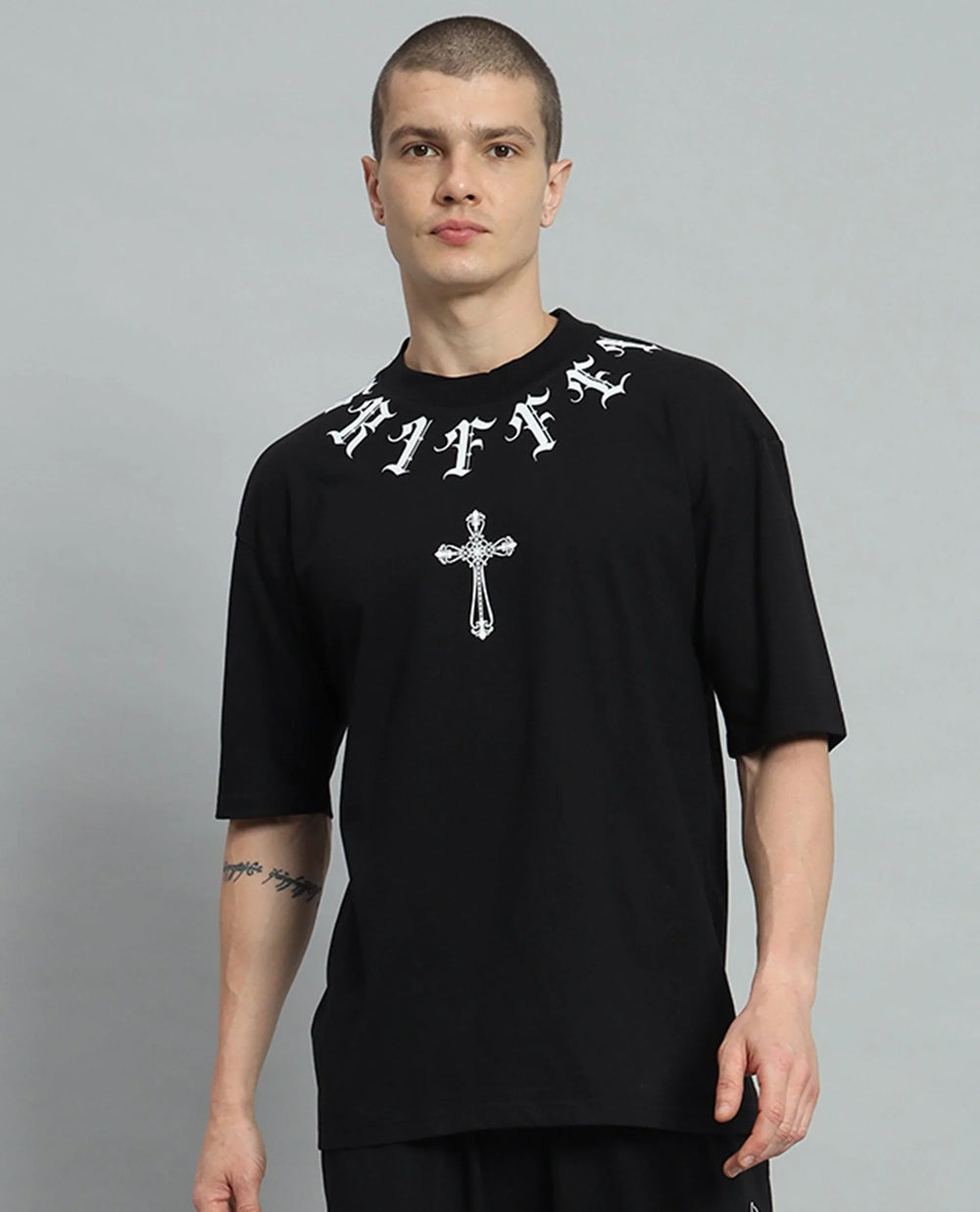 GRIFFEL Men Printed Black Loose fit T-shirt and Trackpant Set