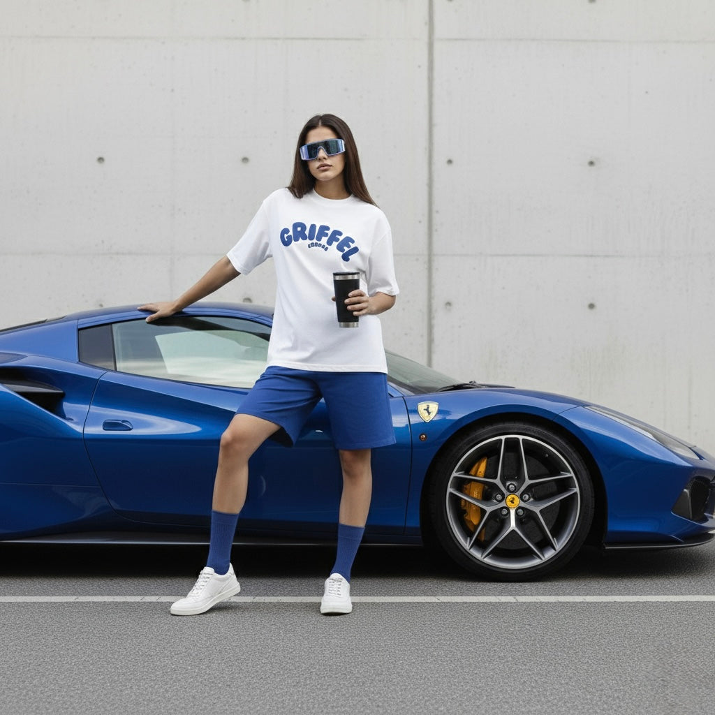 Styling Tip: Contrast the oversized, relaxed nature of this co-ord with sleek, structural accessories. Pair it with angular sunglasses, a structured mini bag, and clean, minimalist sneakers for an effortlessly modern, model-off-duty look.